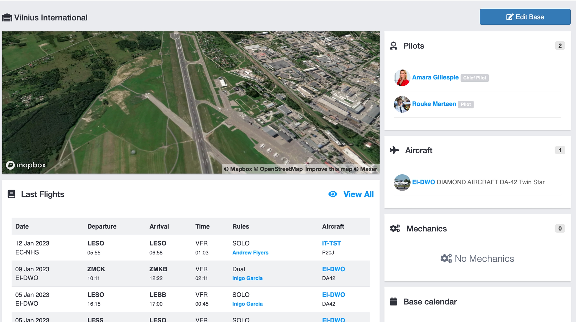 Our Base Management system, integrates deeply within the flight logbooks, aircraft management and scheduling system.