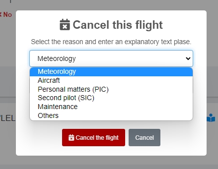 The PIC, has the option to cancel the flight manually. By doing so, the system has the chance to ask for the reason.