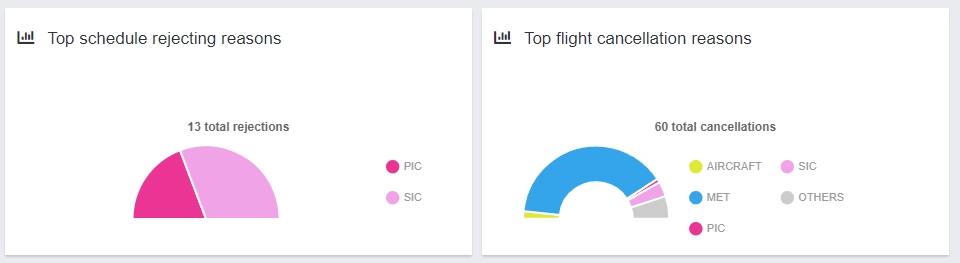 This information is stored and displayed in the Schedule cancellation analytics page so you can have a better understanding of why your flights are being cancelled.