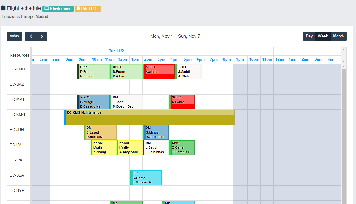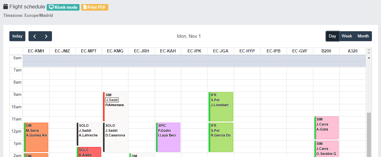 Daily view is perfect for operators like flight schools with up to ten aircraft. This view allows to easily view all day schedule.